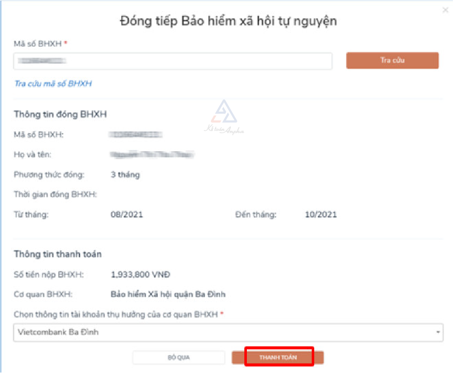 Hệ thống sẽ trả kết quả như hình minh họa bên dưới, bạn chọn “Thanh toán”;