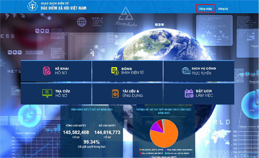 ➧ Bước 1: Truy cập Cổng dịch vụ công BHXH Việt Nam >> Chọn “Đăng nhập”;