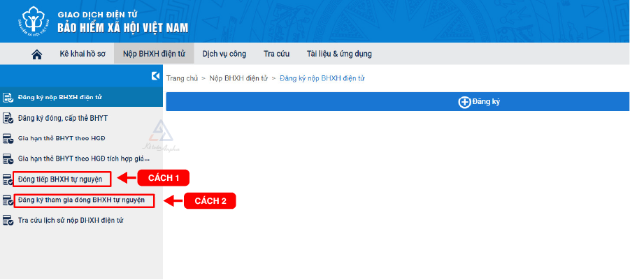 Tại tab menu chọn “Nộp BHXH điện tử”, tùy vào từng trường hợp mà bạn cần chọn 1 trong 2 cách: