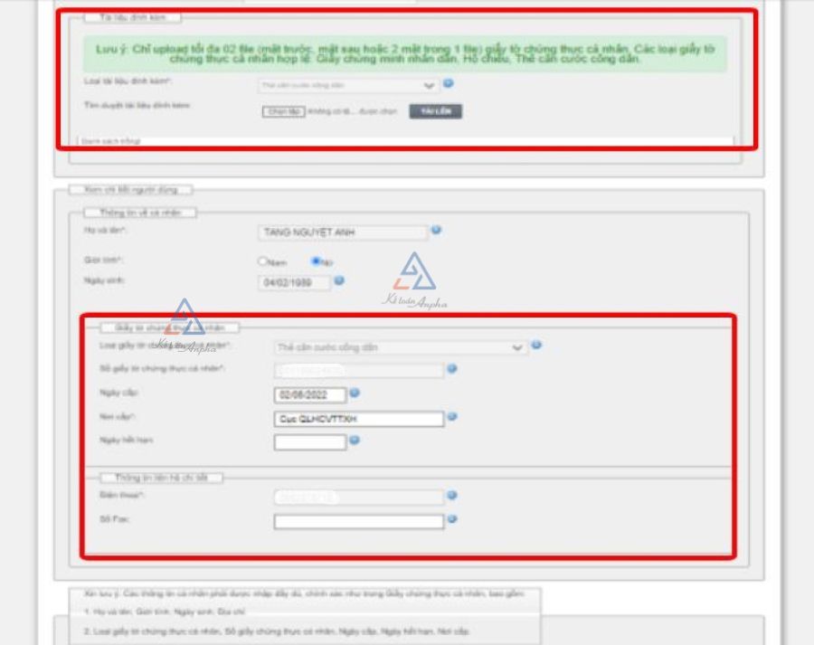 - Bước 2: Tải lên ảnh CCCD 2 mặt (bản chính hoặc bản sao có chứng thực) và điền thông tin cá nhân;
