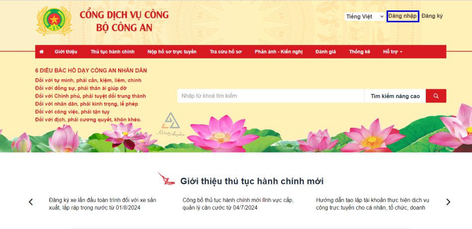 ➧ Bước 1: Đăng nhập Cổng dịch vụ công Bộ Công an bằng tài khoản Cổng dịch vụ công quốc gia;
