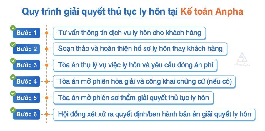 Quy trình tư vấn ly hôn, làm thủ tục ly hôn của luật sư Kế Toán Trực Tuyến như sau: