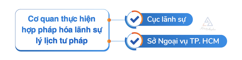 Cơ quan đại diện ngoại giao của Việt Nam có thẩm quyền chứng nhận, hợp pháp hóa lãnh sự lý lịch tư pháp và các giấy tờ liên quan khác gồm: Cục Lãnh sự hoặc Sở Ngoại vụ TP. HCM.